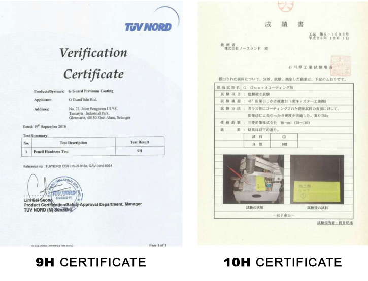 Our products undergo extensive testing to ensure that they meet the industry standard and requirements. We offer both level of hardness, 9H and 10H ceramic coating that pass the hardness test and certified.