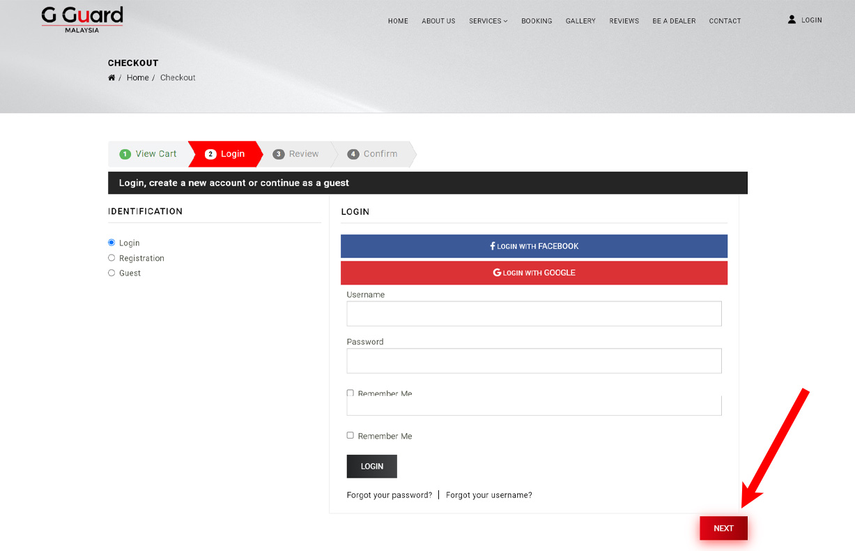 If you're a returning customer, please login using your email and password. Otherwise, please register by completing the registration form. Then click the "Next" button to continue.
